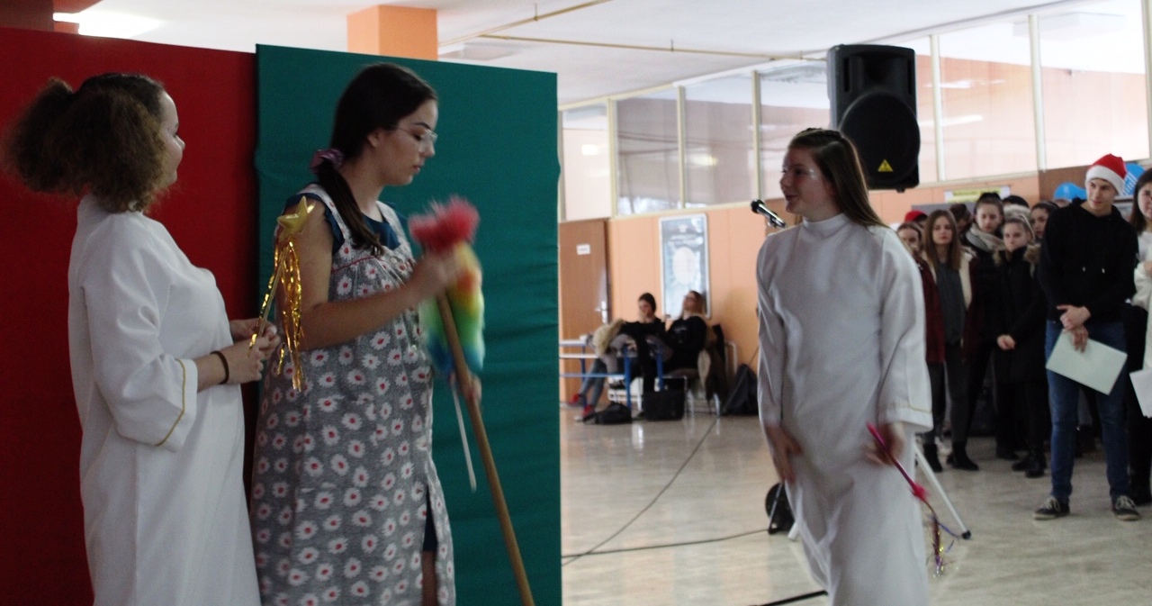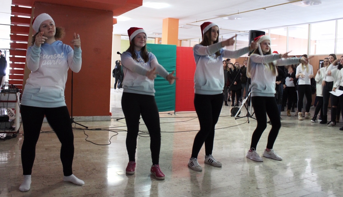 U srijedu, 19. prosinca u našoj je školi održana priredba povodom Božića. Priredbu su organizirali profesor Igor Grubišić i profesorica Snježana Šulentić. Nastupao je naš školski zbor pod vodstvom profesora Grubišića, školski plesni studio Shine te dramska skupina pod vodstvom profesorice Šulentić.