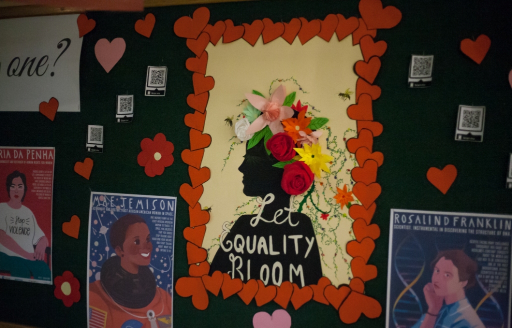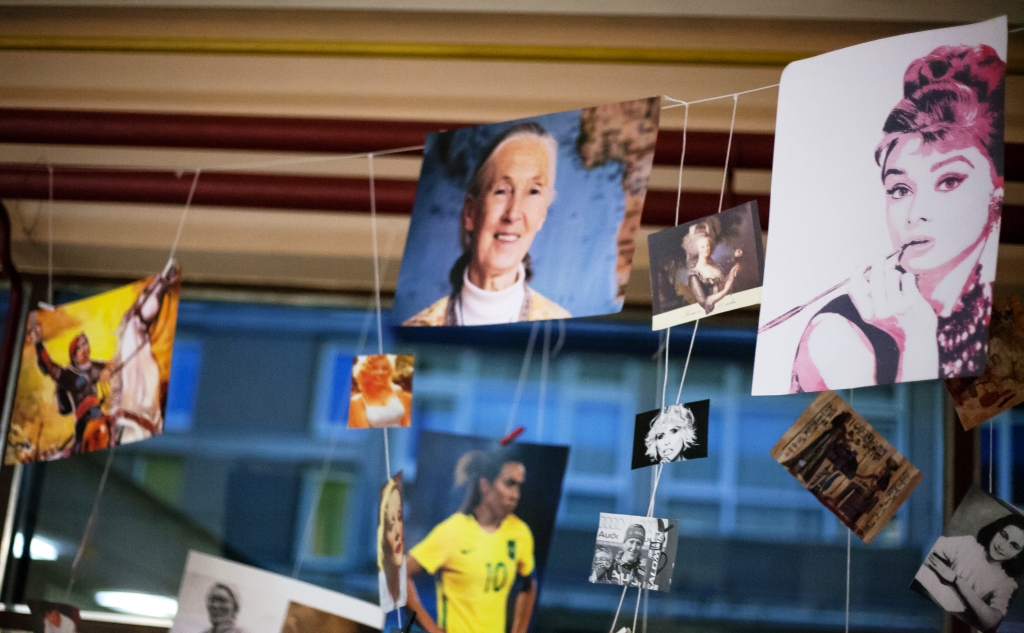 Interaktivnu izložbu fotografija i citata o ženama koju se promijenile svijet osmislili su i postavili učenici 3. a i 3. b zajedno s profesoricamaTamarom Kapraljević i Ozanom Vignjević.