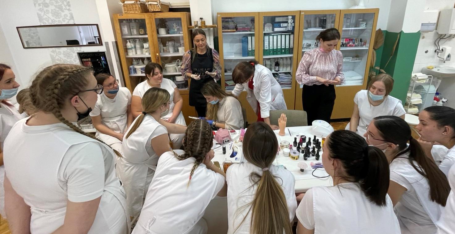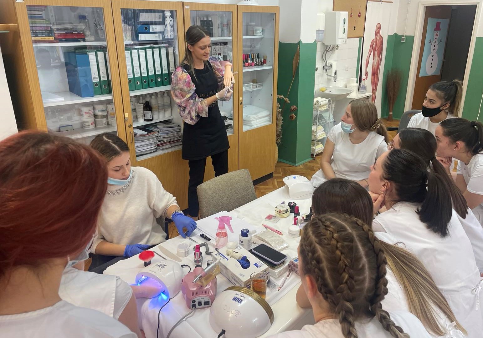 Dana 2. prosinca 2021. u našoj školi učenice 4. kz razreda sudjelovale su na radionici Nail-art pod vodstvom kozmetičarki Ivane Cvikić i Leone Šikić. Radionicu je organizirala nastavnica Blaženka Miškić, u sklopu predmeta Primijenjena kozmetika.