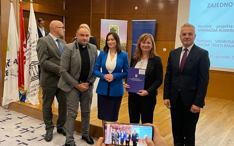 Tehnička škola i prirodoslovna gimnazija Ruđera Boškovića vodeći je partner projekta „Zajedno u duhu – zajedno u sportu“, koji se od 13. svibnja do 30. studenoga 2022. provodi u suradnji sa školom partnerom Katoličkim školskim centrom „Sveti Pavao“ Zenica. Ovaj projekt dio je Programa prekogranične suradnje između Republike Hrvatske i Bosne i Hercegovine, a provodi ga Ministarstvo regionalnoga razvoja i fondova Europske unije, s ciljem pružanja potpore Hrvatima u Bosni i Hercegovini.